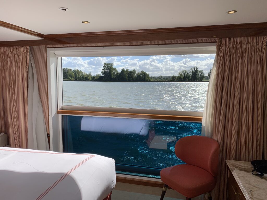 When I travelled on Uniworld Joie de Vivre, I had a stateroom with a French balcony – the top half of the floor to ceiling window glides down to the halfway point allowing an uninterrupted view and plenty of fresh air to circulate.